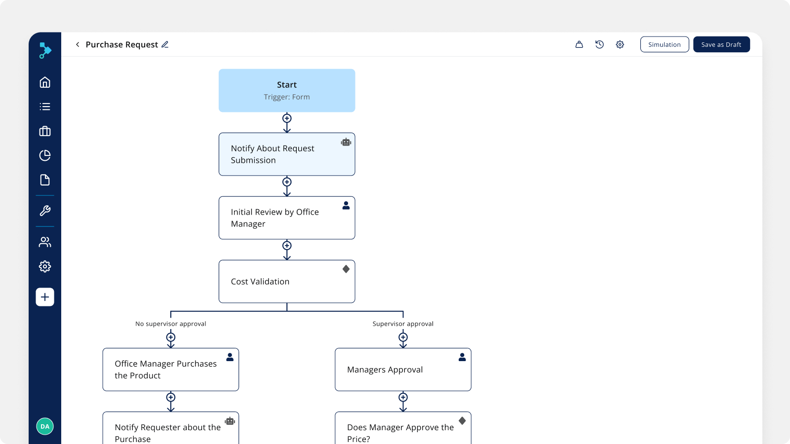 Procify is an AI-powered, no-code platform that helps teams build, run, and measure business processes. Its intuitive workflow builder supports both simple and complex processes, with one-click process execution and integrations that connect to existing systems. Real-time dashboards offer visibility into operations and productivity, enabling teams to continuously improve their processes.