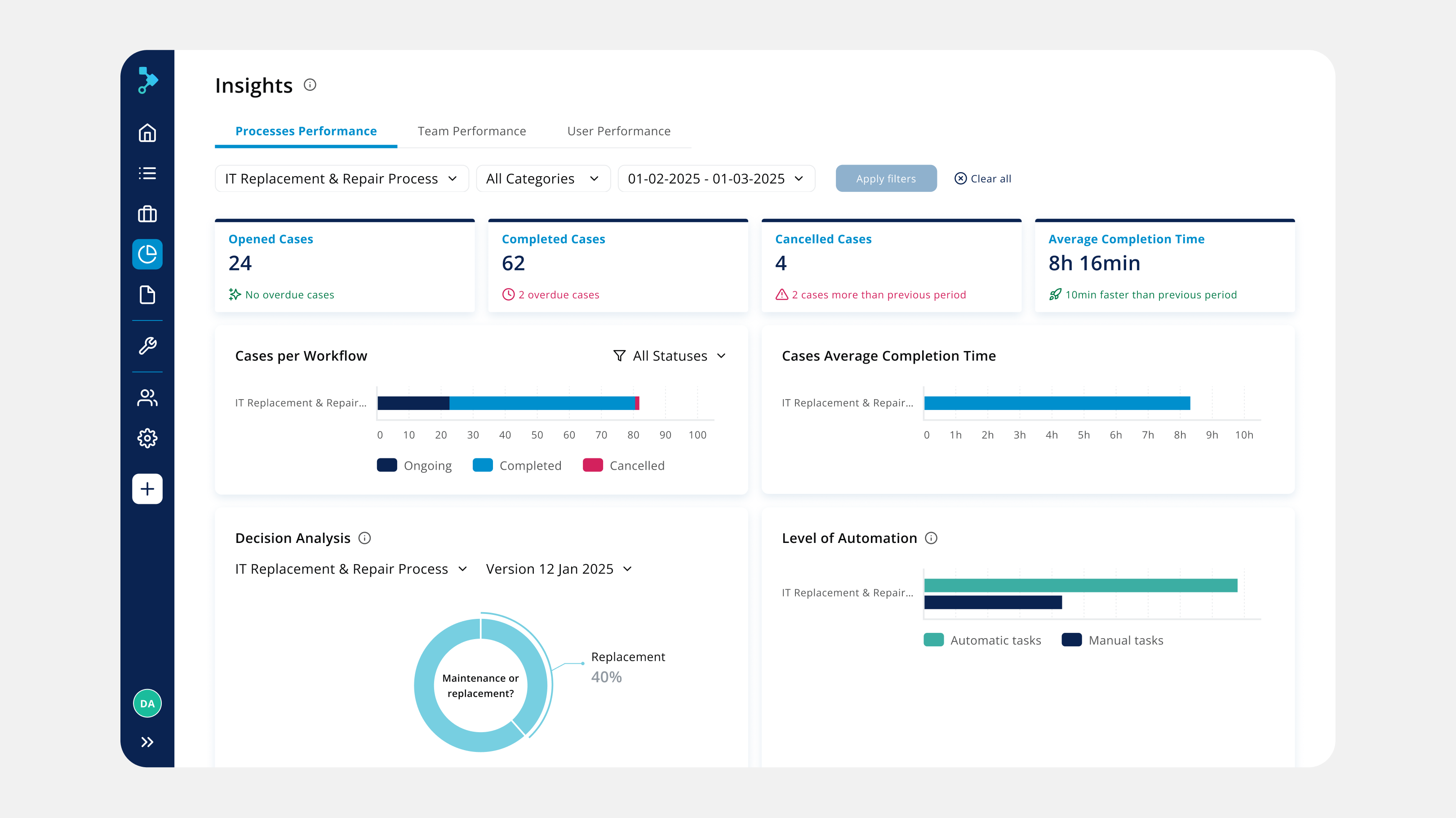 Procify is an AI-powered, no-code platform that helps teams build, run, and measure business processes. Its intuitive workflow builder supports both simple and complex processes, with one-click process execution and integrations that connect to existing systems. Real-time dashboards offer visibility into operations and productivity, enabling teams to continuously improve their processes.
